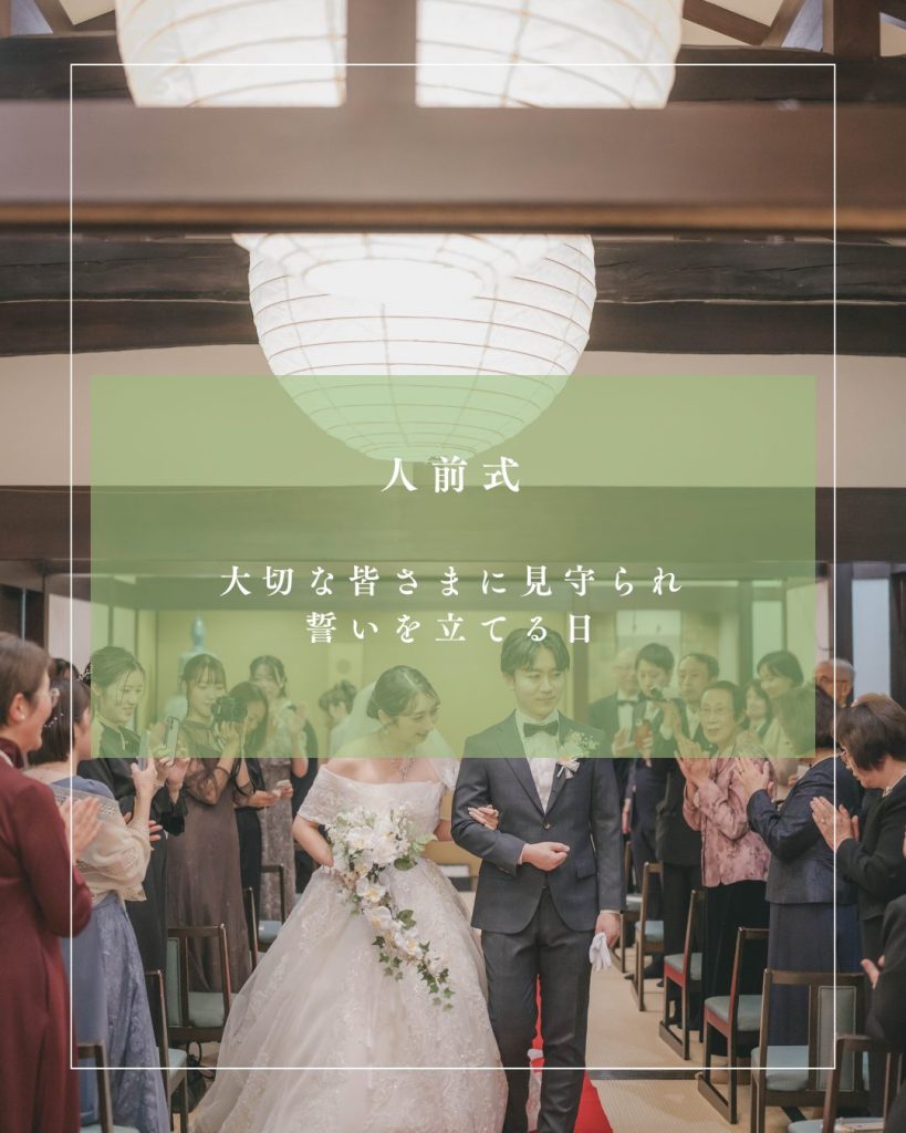 挙式スタイルもさまざまで、神社で厳かに誓う神前式。チャペルで愛を誓うキリスト教式。大切な人に見守られながら想いを交わす人前式。ご先祖様への感謝とともに歩みを誓う仏前式など、おふたりがどんな誓いの日にしたいか?をもとに挙式スタイルを決めていきます。
