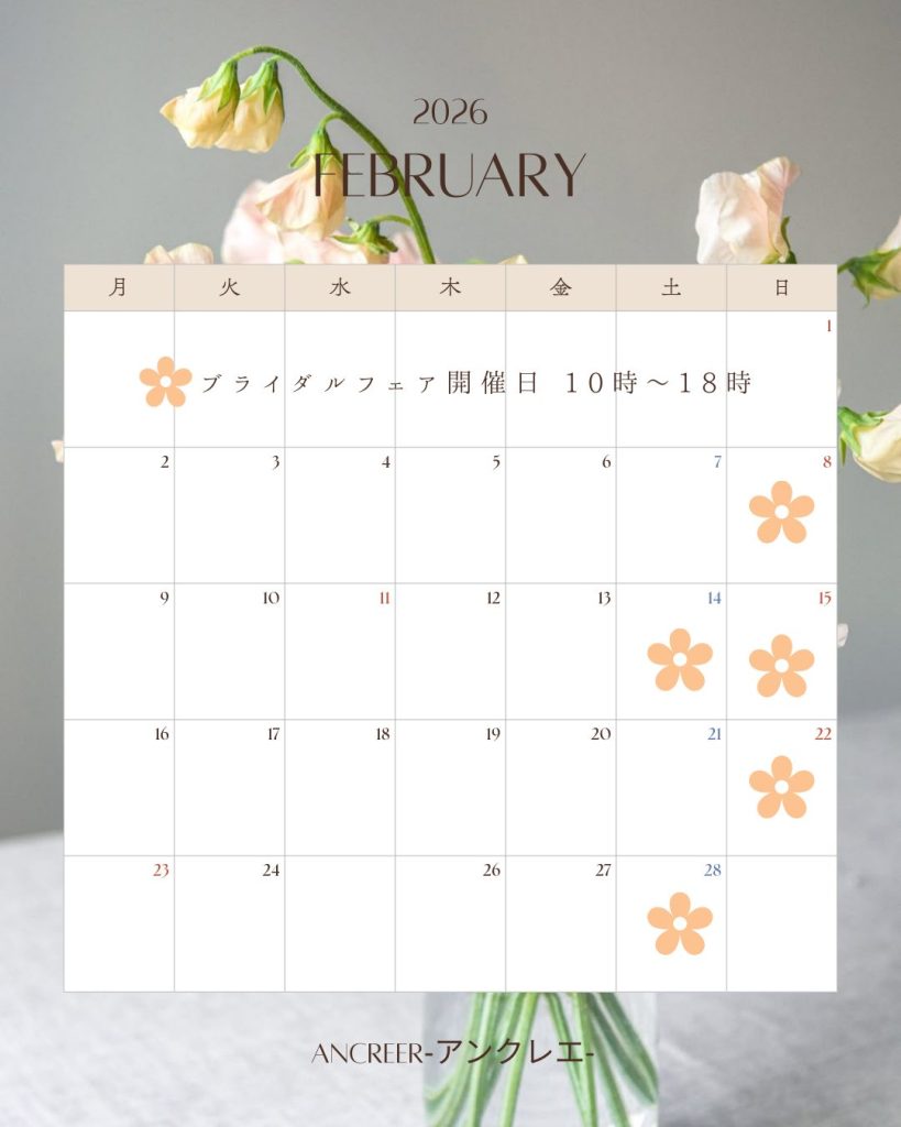 2月8日(日)/14日(土)/15日(日)/22日(日)/28日(土)